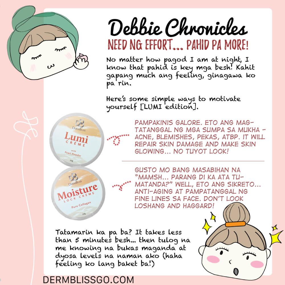 It's not too late... you can always start your skin care routine TODAY, whether teenager or senior ka pa. Choose one that's hiyang for you... and for me, that's DermBliss! It's affordable and effective, so of course it's Debbie-approved!
